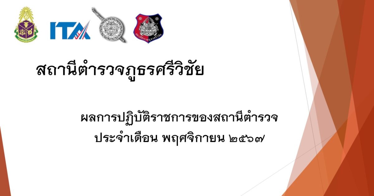 ผลการปฏิบัติราชการ สภ.ศรีวิชัย ประจำเดือน พฤศจิกายน 2567